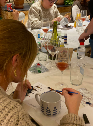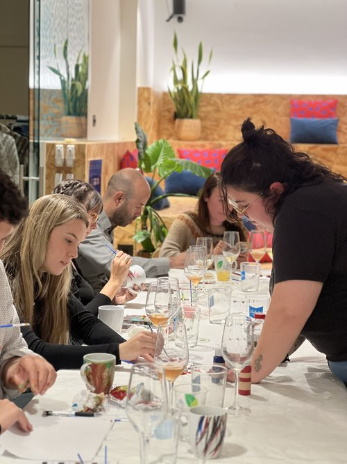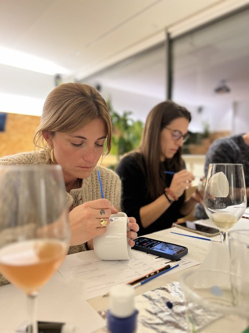 No, de veritat, mireu quin taller vam fer el passat dijous! Vam pintar tasses i, mentrestant, també tastàvem vinets!