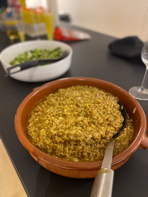 Vam poder tastar un arròs amb calamars, un gaspatxo de mango, una amanida de bròquil, acompanyat d’un aigua de València, i de postres una mousse de fruits del bosc.